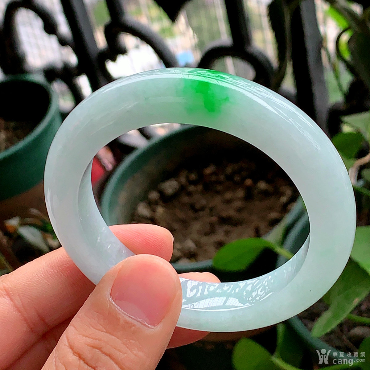 缅甸天然翡翠A货冰透水润飘绿宽边手镯57圈口