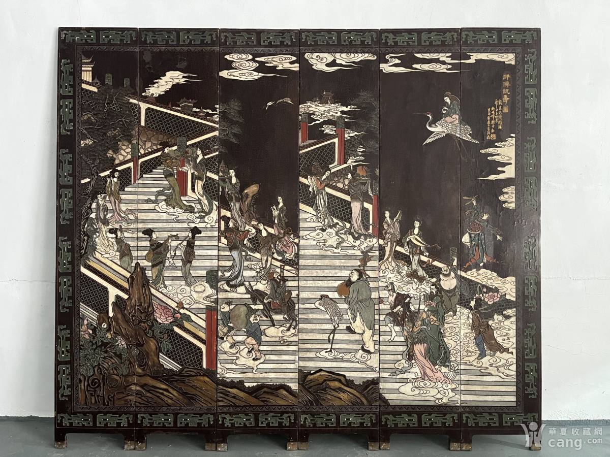 大漆~群仙祝寿人物•屏风 做工精美 一幅画,人物姿态各异,