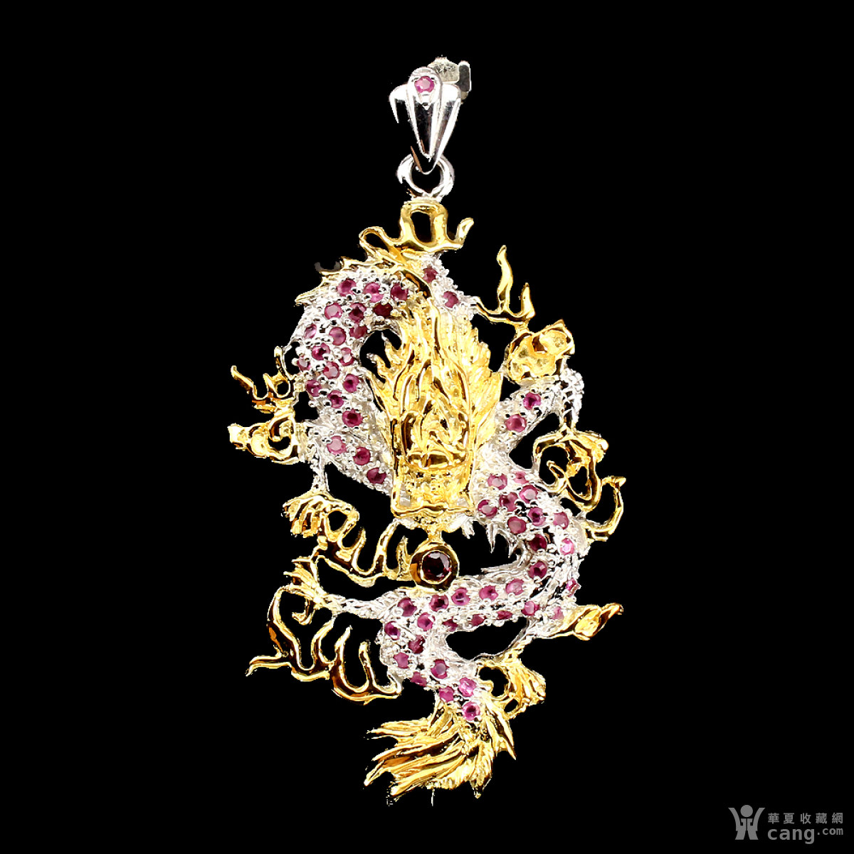 【现价再打8折特惠】纯天然红宝石925银镀14K金龙型吊坠