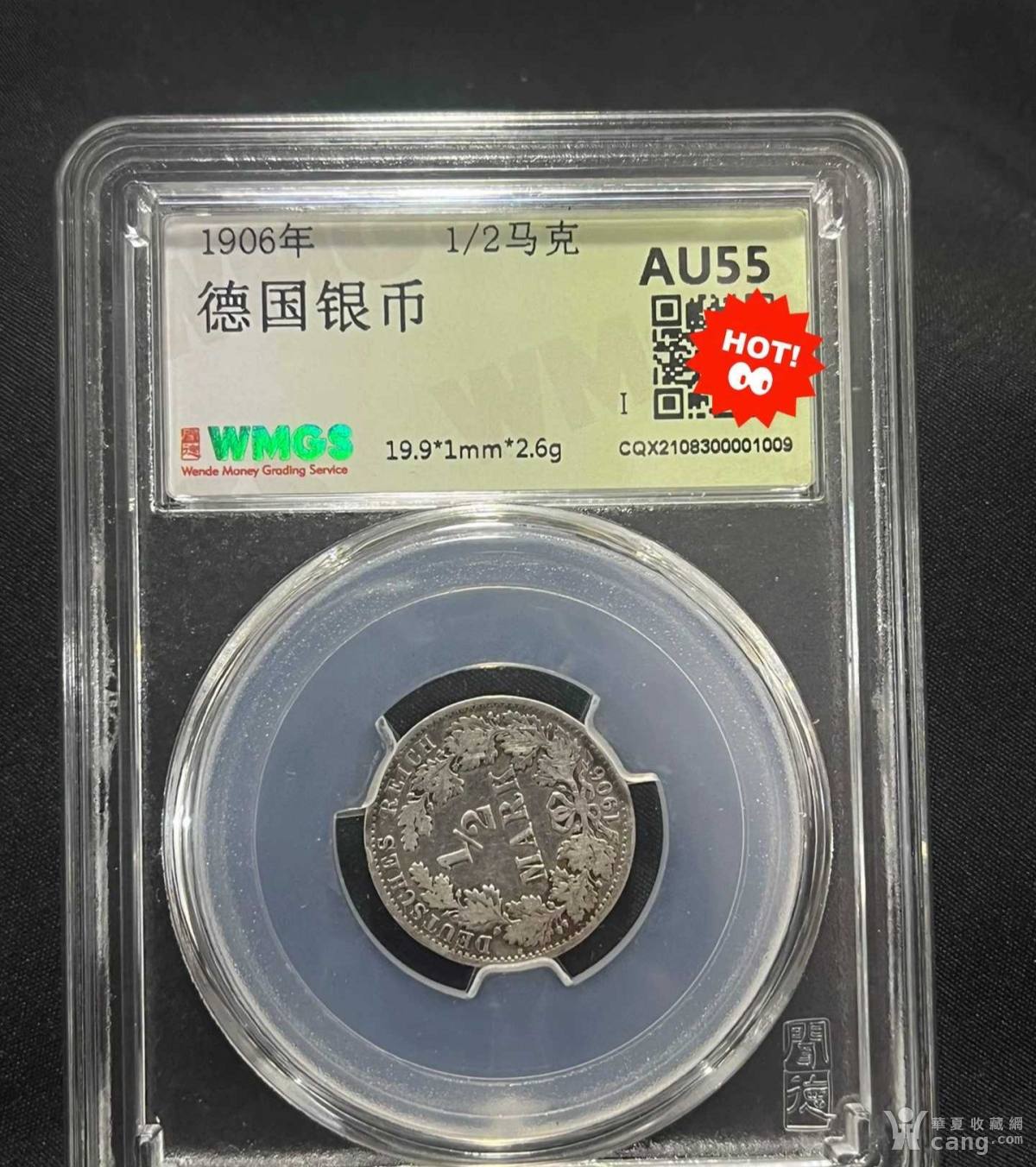 1906年德国1/2马克银币 半马克银币 闻德评级AU55分