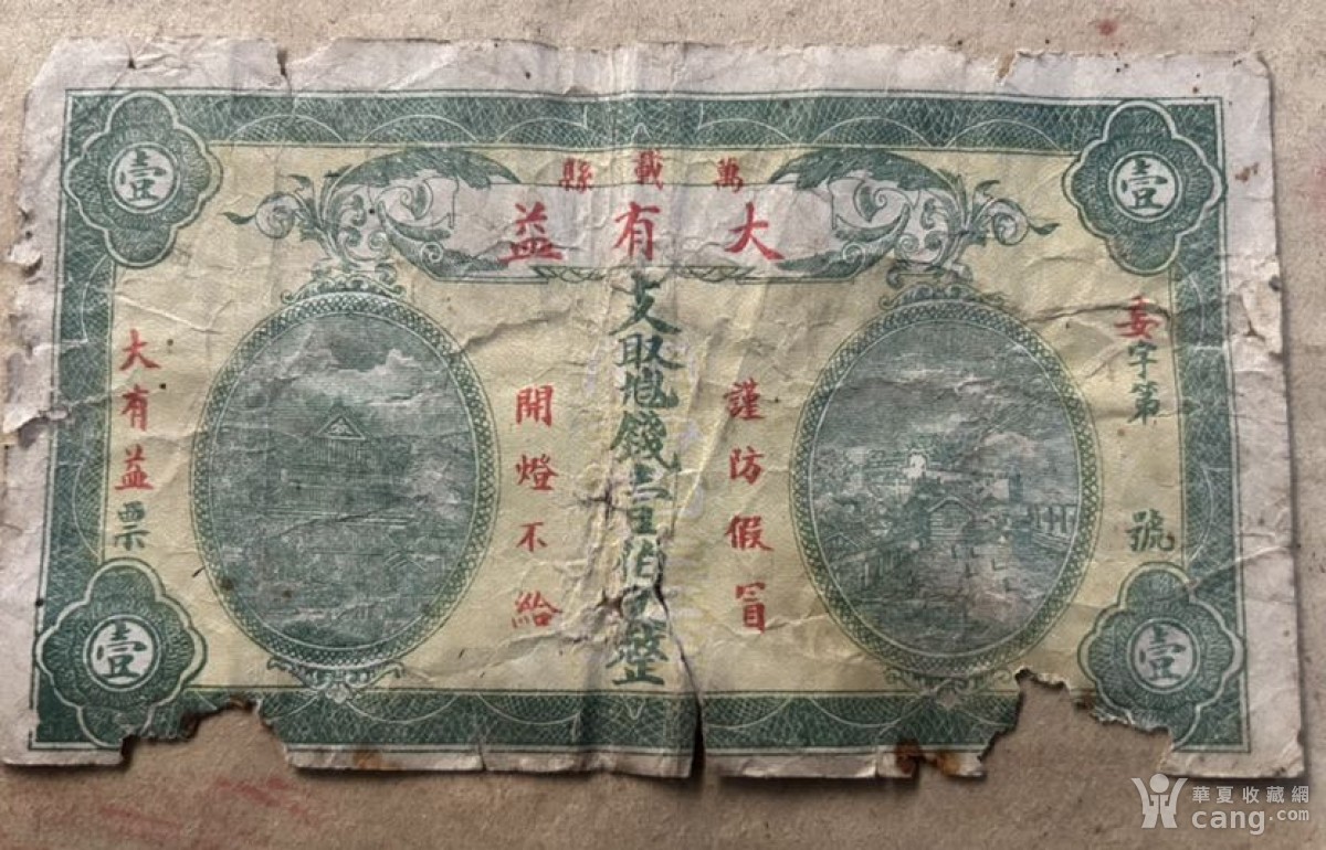 稀见,萬载大有益钱号钱庄票壹百文整[强]