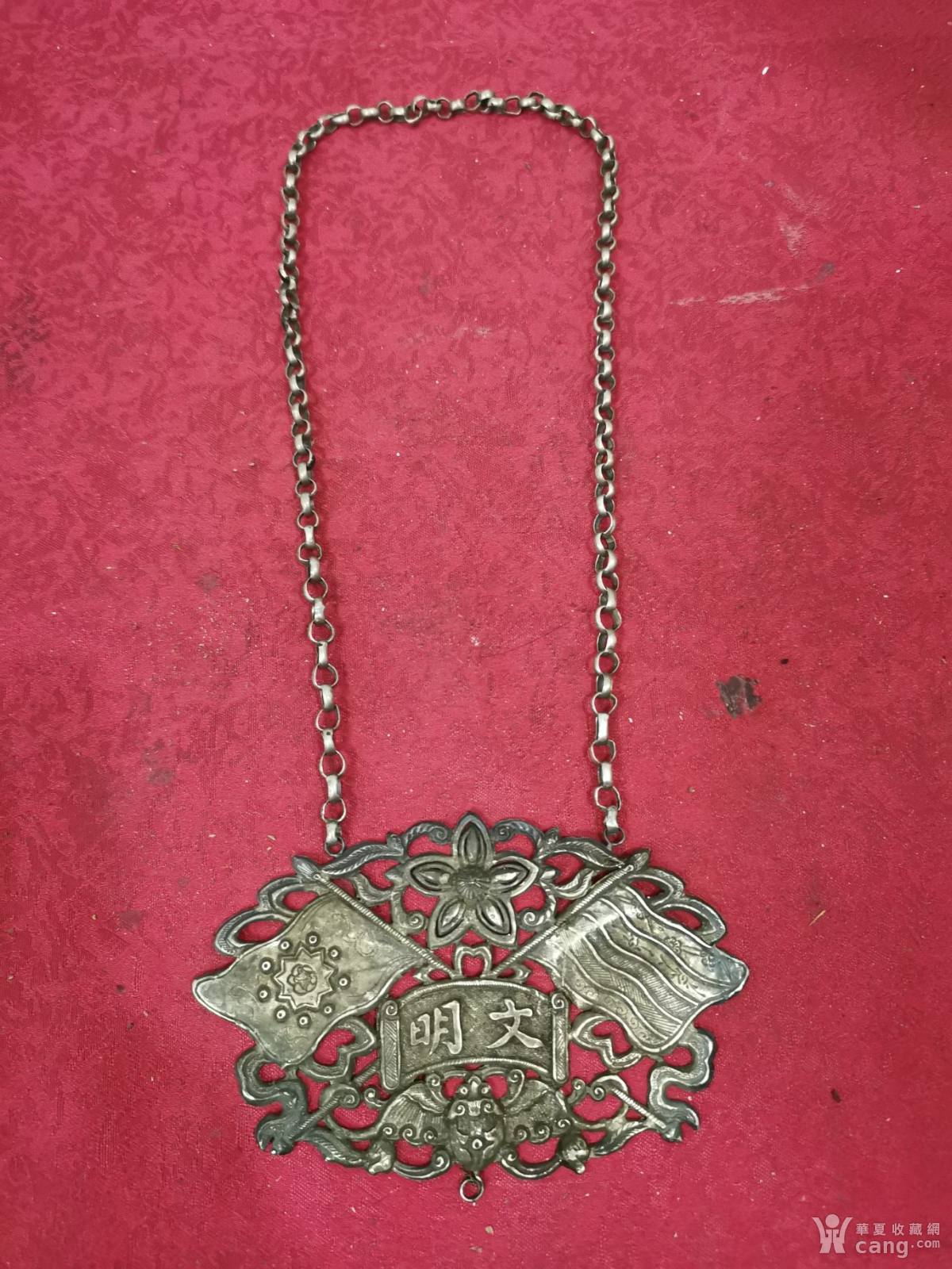 很少见这款式的晚清民国精美镂空银饰挂件大胸牌