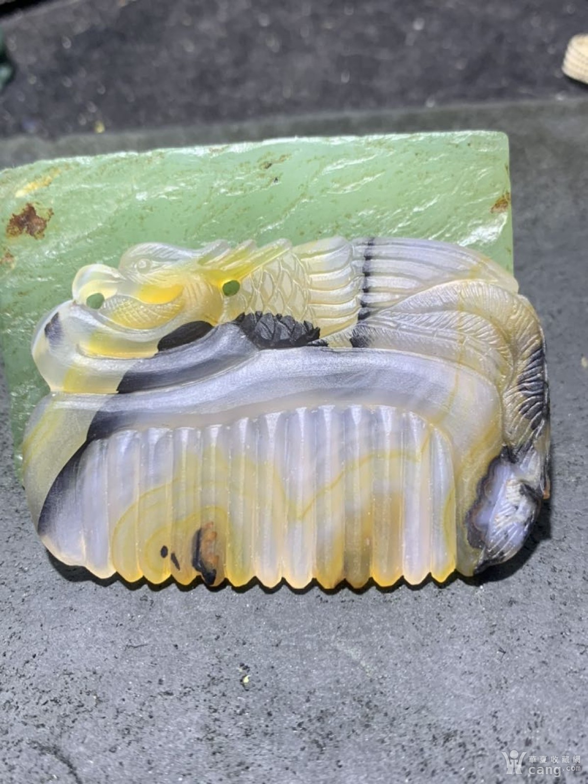 精美亚光高玉化巴西玛瑙手工雕刻凤凰梳形牌子一个,