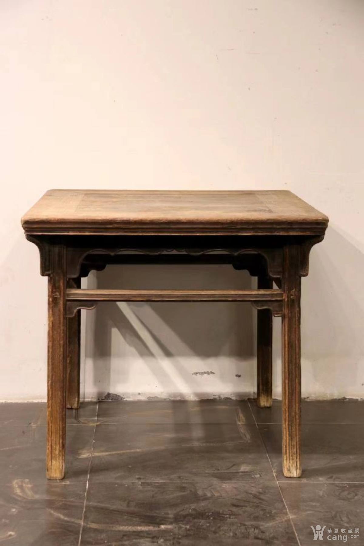 方台,此桌全身打凹,面微喷 ,做工繁而不乱 ,侧角显著 ,四