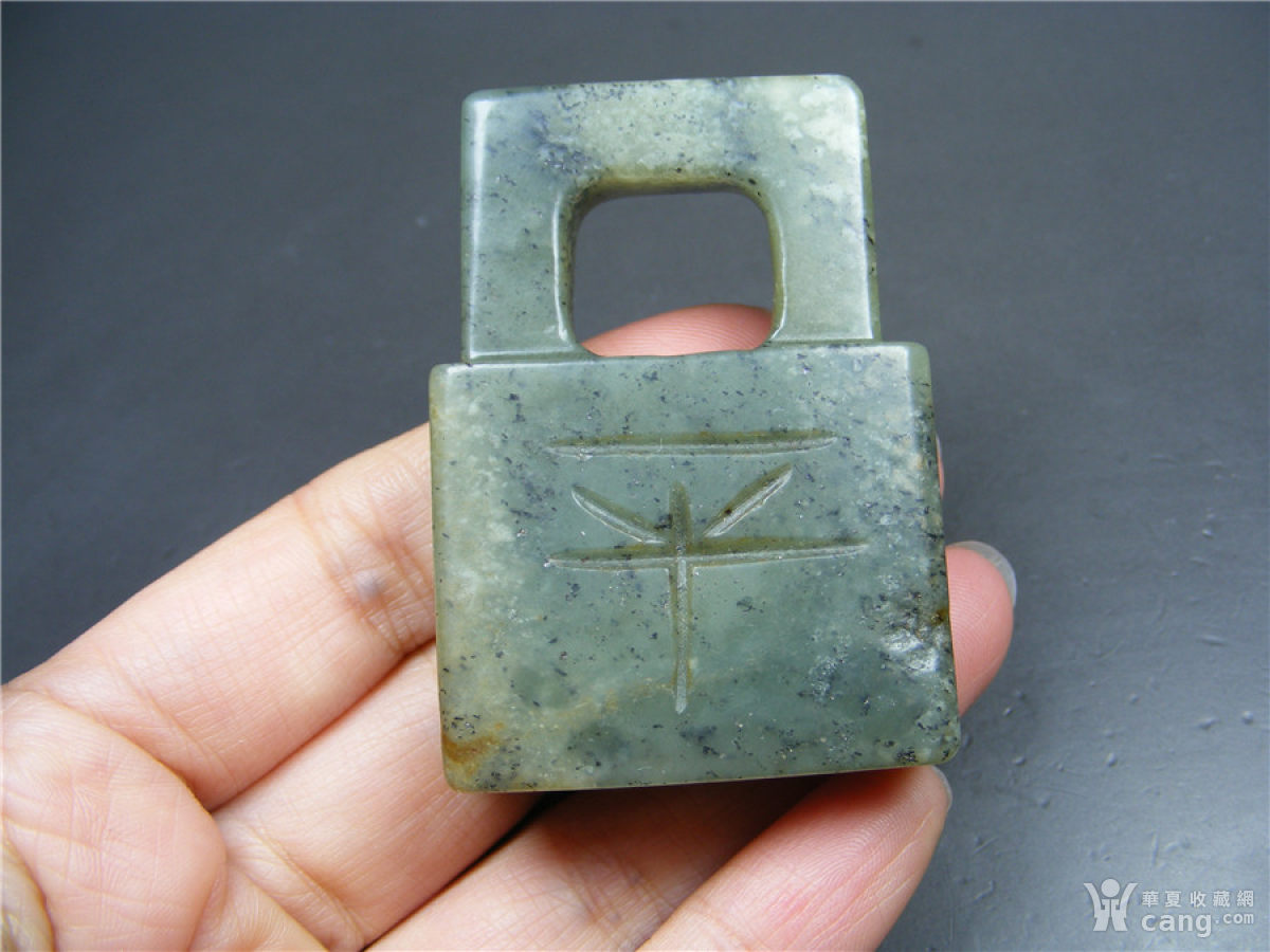 60 和田青玉带沁厚实双面工“平安”锁型大把件