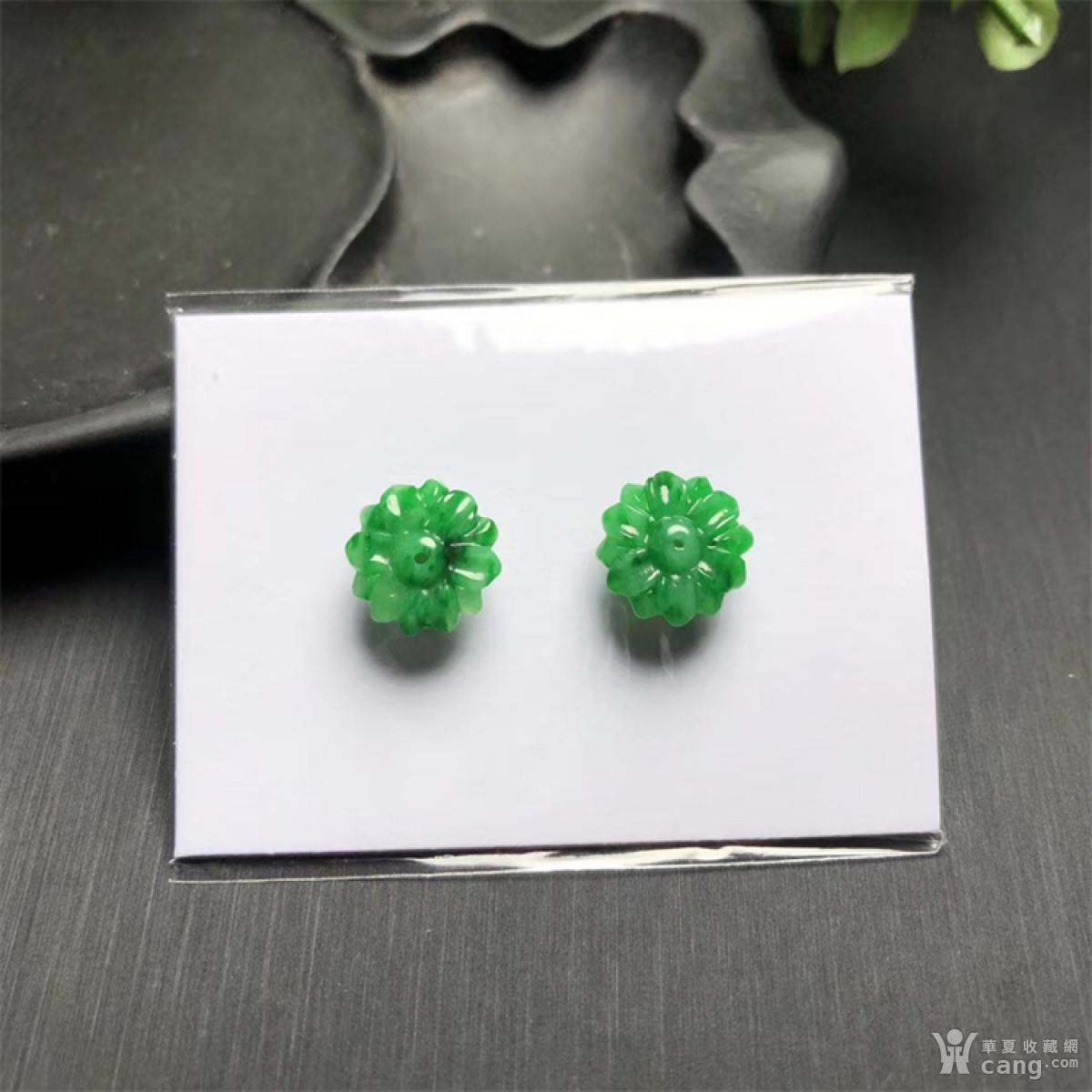 E235天然A货糯冰种满绿翡翠花朵镶嵌件一对