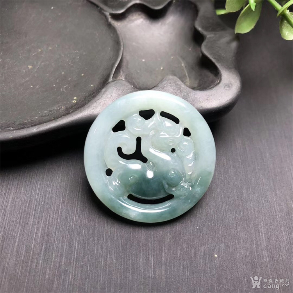 E255天然A货糯冰种飘绿翡翠瑞兽福寿小圆佩