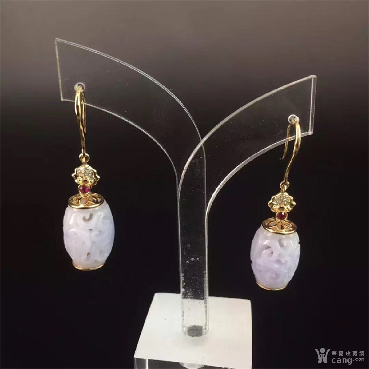 M429 18K金伴红宝石镶紫罗兰翡翠桶珠耳坠
