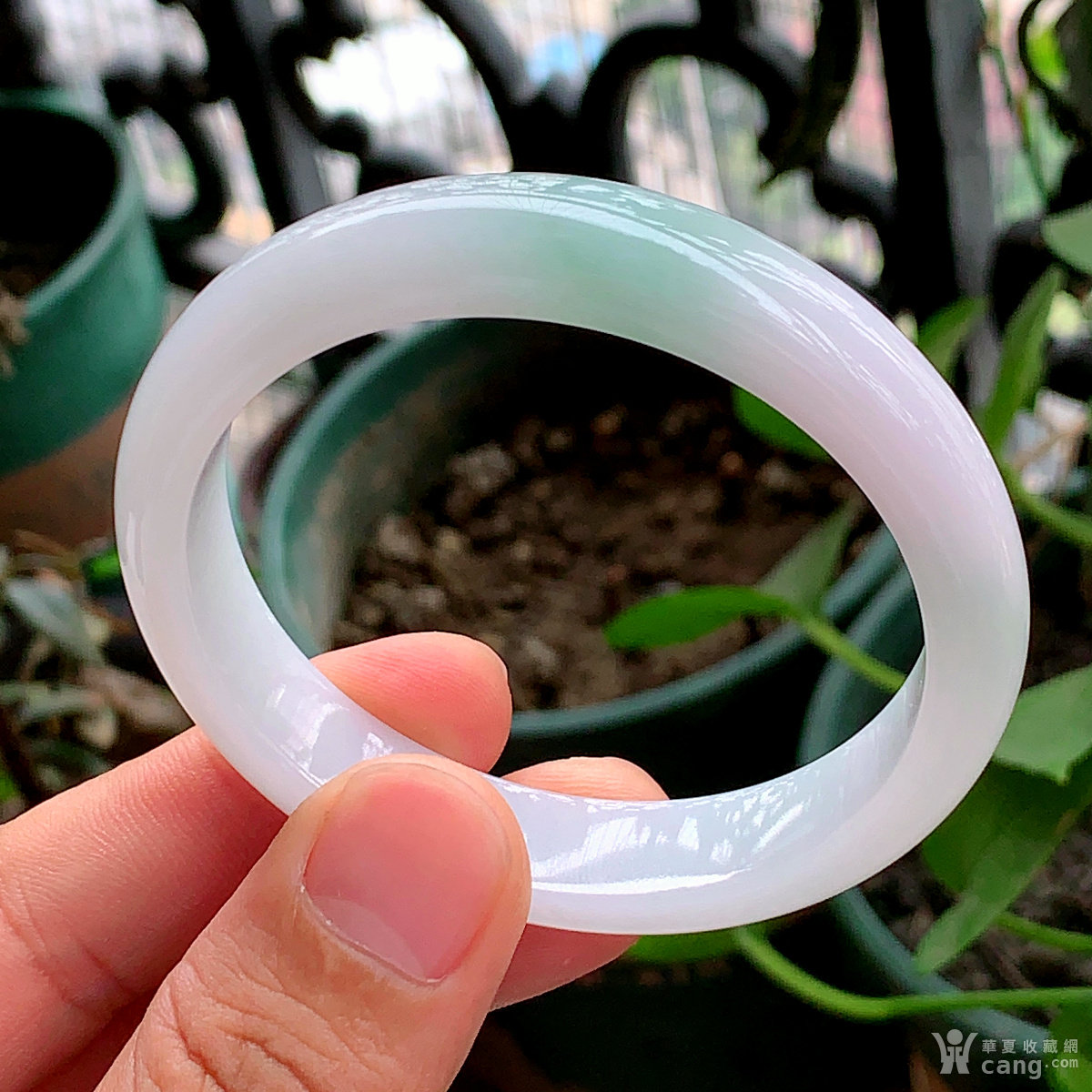 缅甸天然翡翠A货冰透水润飘绿宽边手镯57.8圈口