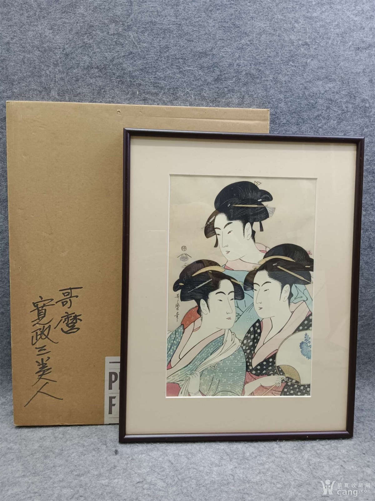 回流浮世绘版画:宽政三美人(含框带原盒)